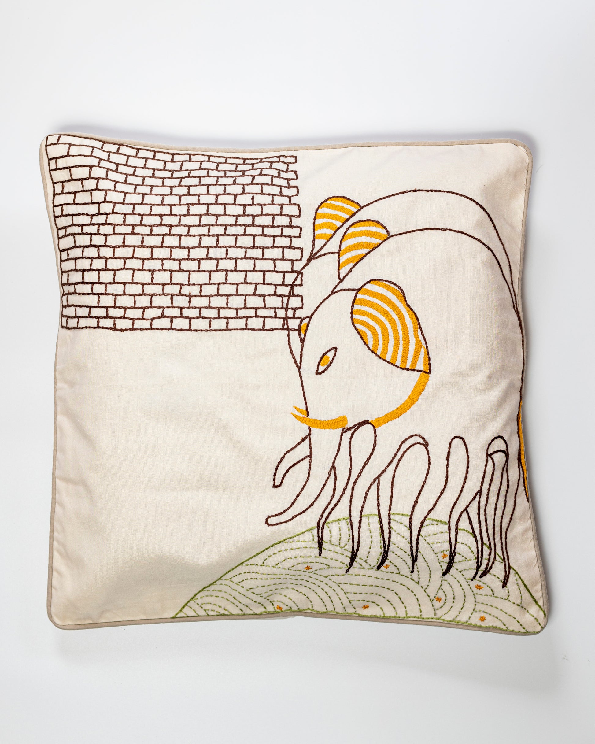 The design of the cushion cover is inspired from Gond Art, a tribal art form of Central India.