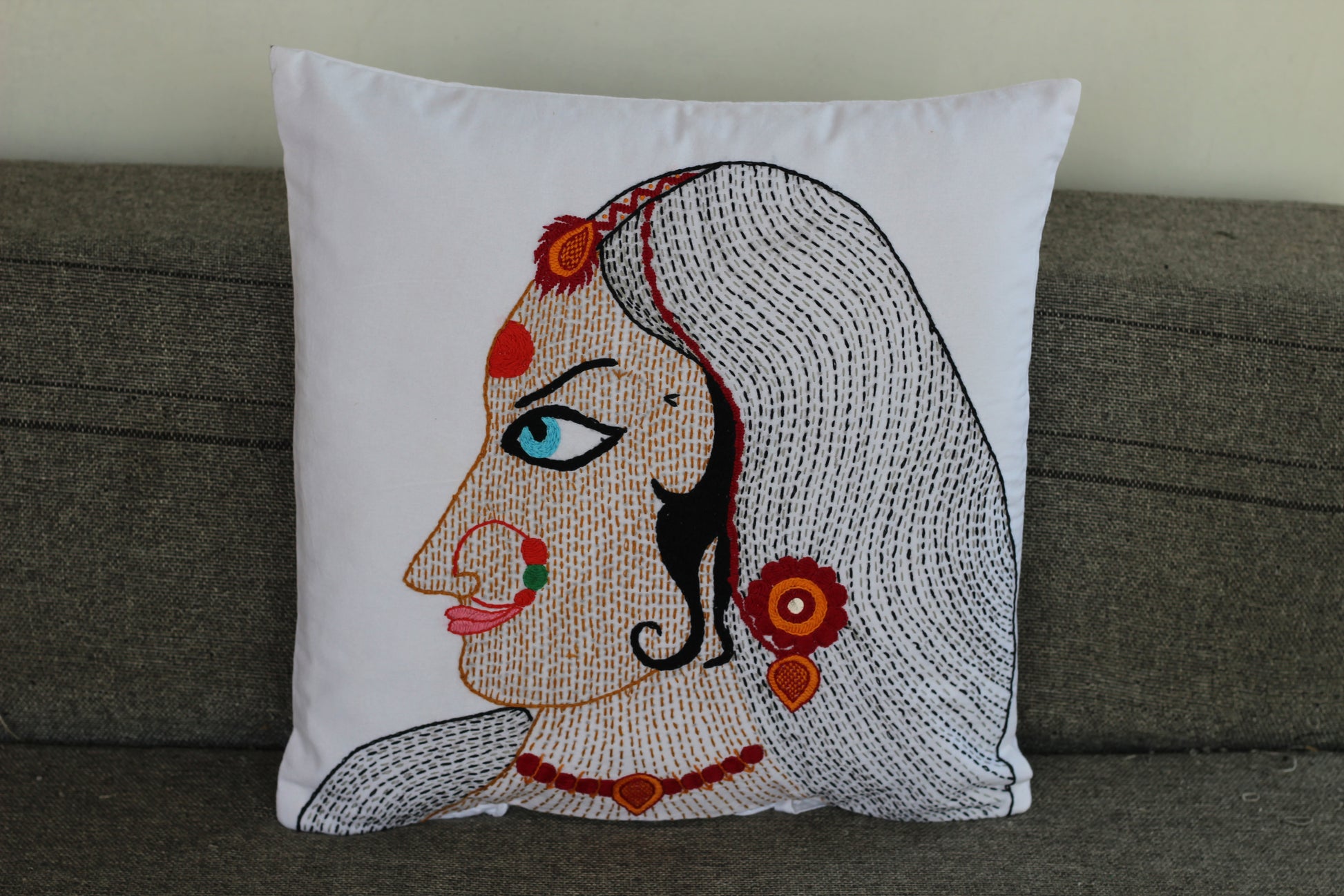 Hand Embroidered Cushion Cover – 16 x 16 inches